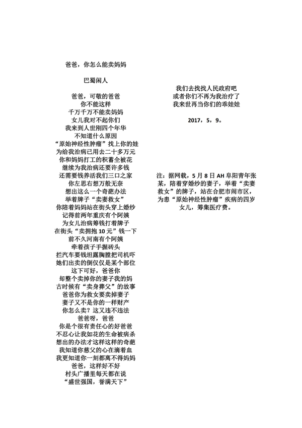 爸爸,你怎么能卖妈妈?